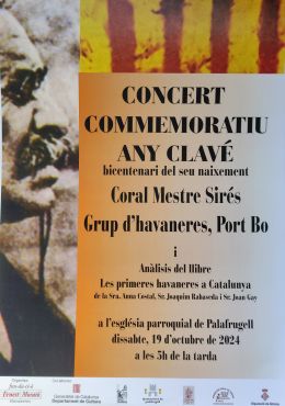 Aquest any se celebra el bicentenari del naixement de Josep Anselm Clavé i hem programat un concert amb la Coral Mestre Sirés i la participació del grup d'havaneres Port Bo que tindrà lloc a l'església parroquial de Palafrugell el 19 d'octubre a les 17h.